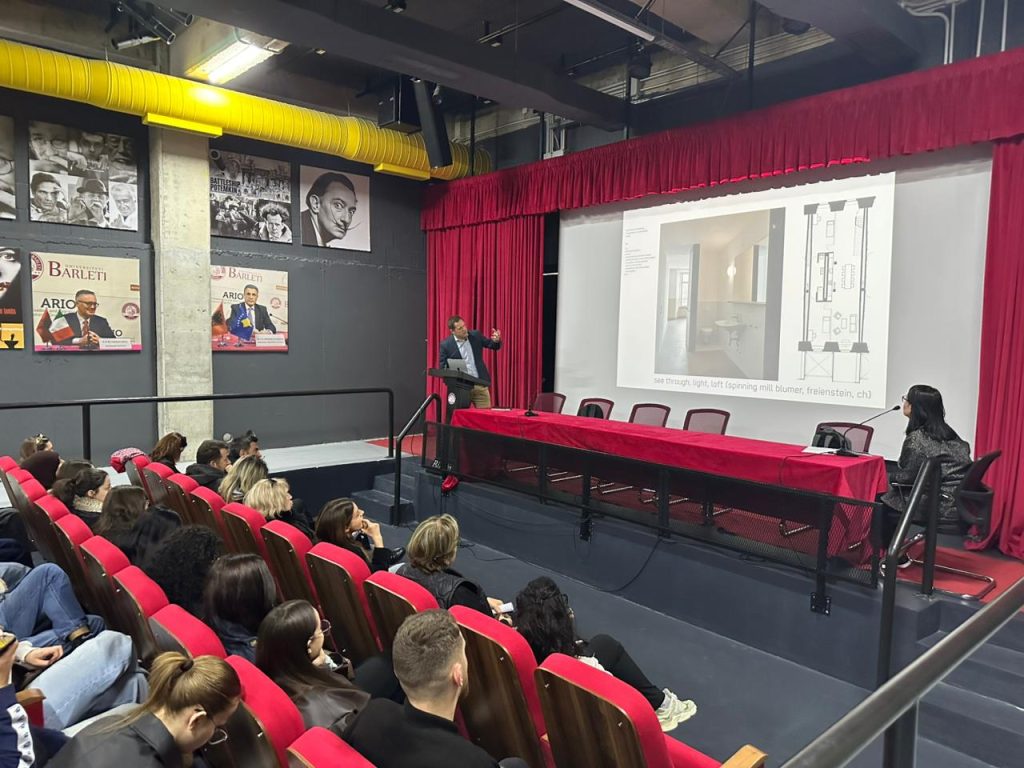 Diten e sotme me datë 02 Mars, leksioni u ndoq nga studentë të arkitekturës dhe stafi akademik, duke sjellë një diskutim frymëzues mbi temën: “Rinovimi i ndërtesave ekzistuese në mënyrë të përgjegjshme dhe të qëndrueshme”.